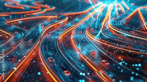 Abstract depiction of data flowing through a network of interconnected highways, symbolizing the Information Superhighway