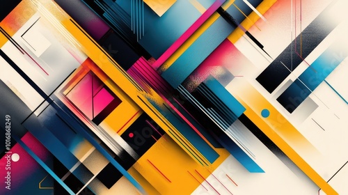 Abstract design with sharp diagonal lines cutting through colorful geometric shapes, perfect for tech or modern themes.