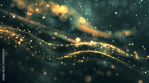 Abstract digital artwork featuring glowing particles and flowing lines.