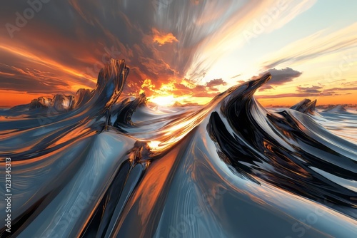 abstract, digital, art, surreal, metallic, wave, sunset, sky, cloud, vibrant, dramatic, landscape, modern, creative, design, fantasy, futuristic, colourful, texture, imagination, visual, artistic, concept, unique, innovative, expression, contemporary, dynamic, fluid, motion