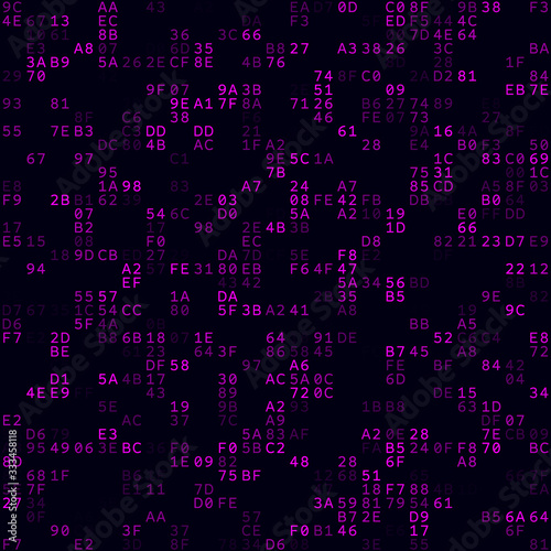 Abstract digital background. Magenta sparse hexadecimal pairs background. Medium sized seamless pattern. Trendy vector illustration.
