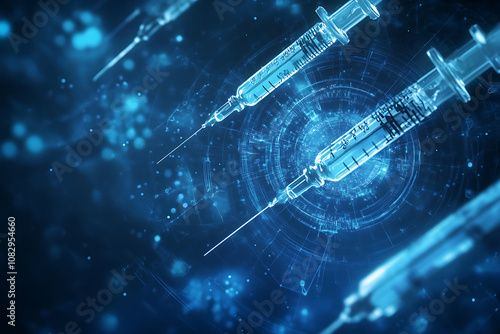Abstract digital background on a medical theme, featuring futuristic elements and symbols related to healthcare and medicine.