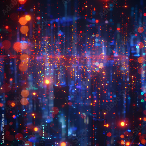 Abstract digital city lights with red and blue lights shining brightly in the night sky.Abstract digital city lights with red and blue lights shining brightly in the night sky.
