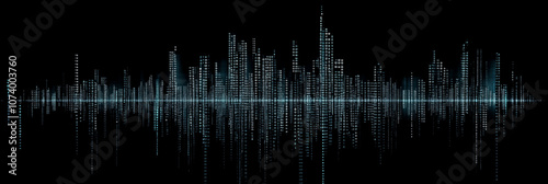Abstract Digital Cityscape with Binary Code Aesthetic