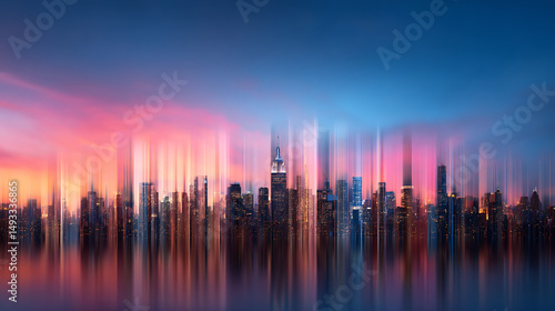 abstract, digital, city landscape, colourful, line, real, city, background, dusk, concept, technology, generative, ai, image, art, design, future, innovation, progress, network, connection, datum, information, structure, texture, pattern, light, colours, shade, tone, hue, geometry, shape, form, space, perspective, dimension, scene, view, horizon, skyline, style, modern, contemporary, graphic, visual, cyber, virtual
