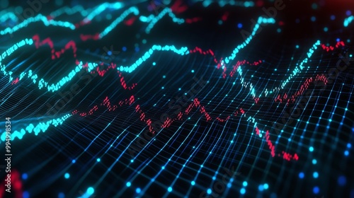Abstract digital data visualization with colorful lines and graphs, representing statistics and analytics in a futuristic style.