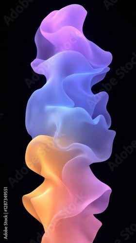Abstract Digital Illustration of Fluid Wavy Shapes in Pastel Colors with Translucent Quality on Black Background
