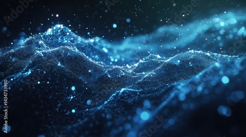 abstract, digital, particle, landscape, blue, mountain, textured, wave, pattern, design, light, glow, dot, point, texture, three-dimensional, graphic, illustration, rendering, computer, generated, image, surface, form, background, effect, motion, flowing, dynamic, composition, element, modern, technology, futuristic, science, physics, space, universe, datum, information, visualisation