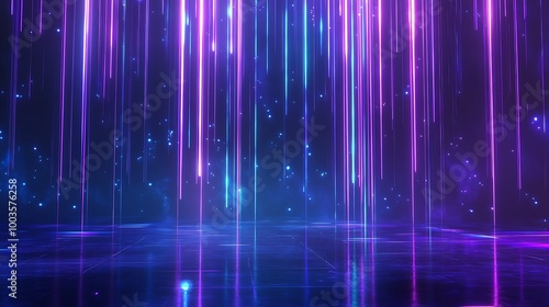 Abstract digital landscape with vibrant purple and blue light streaks creating a futuristic atmosphere.