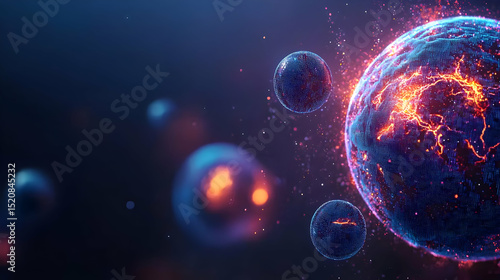 digital, art, planet, earth, glowing, energy, abstract, three-dimensional, colourful, particle, technology, science, space, future, design, illustration, modern, geometric, blue, red, orange, dark, explosion, vibrant, dynamic, background, style, computer graphic, fractal, texture, motion, light, blur, sphere, dot, point, fractal art, graphic design, visual, animation, design element, beautiful, creative, digital artwork