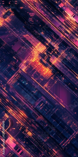 Abstract Digital Technology Background with Neon Colors and Dynamic Patterns of Light and Energy