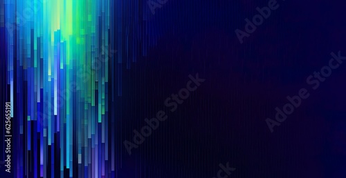 Abstract digital, vibrant pattern with squares, lines, rectangles. Business card. Blue, lime green, violet, purple stripes for a technology glowing pattern. Light texture for science and research.