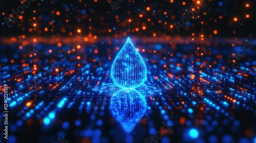 water, dripped, digital, abstract, technology, particle, field, blue, orange, light, glow, futuristic, energy, datum, network, connection, flow, liquid, design, science, innovation, modern, background, illustration, graphic, visual, texture, pattern, concept, idea, element, scene, art, style, image, three-dimensional, render