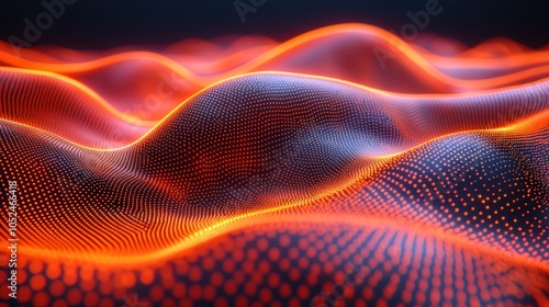 abstract, digital, wave, glowing, orange, light, technology, futuristic, modern, design, pattern, background, texture, graphic, illustration, concept, datum, network, connection, cyberspace, science, artificial, intelligence, three-dimensional, render, motion, dynamic, energy, power, flow, movement, ripple, curve, smooth, vibrant, colourful, bright, dark, gradient, pixel, dot, line, mesh, surface, geometric, shape, minimal
