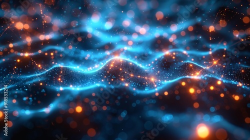 abstract, digital, waveform, glowing, particle, blue, orange, futuristic, technology, datum, flow, wave, background, dark, generative, ai, computer, science, energy, cyber, network, visualisation, light, innovation, design, artificial, intelligence, modern, art, tech, matrix, motion, particle, system, fluid, information, visual, neon, star, christmas, bright, space, colours, glow, holiday, animation, night, blur, loop