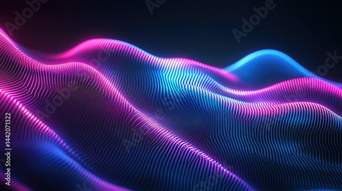 abstract, digital, wave, neon, colours, vibrant, pink, blue, glowing, line, pattern, texture, design, futuristic, technology, graphic, illustration, modern, computer, generated, light, energy, dynamic, movement, smooth, flowing, ripple, curve, element, shape, form, bright, illuminating, style, trendy, background, wallpaper, display, screen, surface