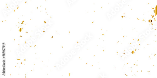 Abstract doted and confetti golden glitter and zigzag ribbon particles splatter on transparent background. Luxury golden glitter confetti that floats down falling bokeh celebration background.