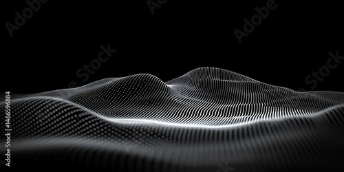 Abstract Dotted Landscape Future Tech Wave Surface on Black.