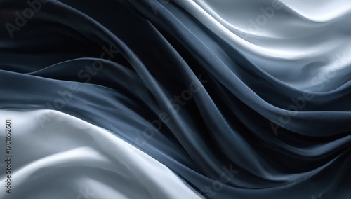 fabric, drape, fold, wave, texture, smooth, silky, elegant, luxurious, flowing, design, pattern, curve, dark, light, white, grey, black, gradient, abstract, material, closeup, detail, artistry, modern, style, fashion, apparel, textile, background, image, photo, rich, dynamic, soft, motion, subtile, shades, contrast, opulent, refined, stylish, sophisticated, beautiful