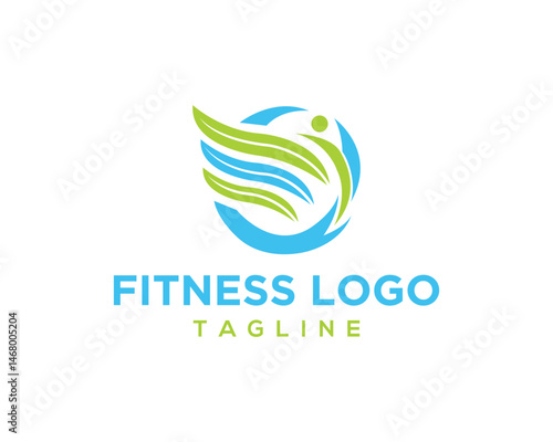 Abstract fitness logo design featuring a stylized person and flowing shapes representing movement and energy for health and wellness businesses