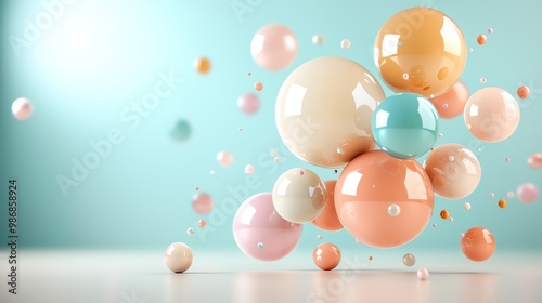 Abstract floating spheres with reflections, vibrant colors, 3D illustration