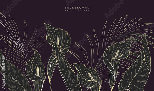 Abstract floral art background. Golden flowers and herbs. and wallpaper. Luxury Botanical cover design with text. Vector art for wallpaper or wall decoration. Hand drawn sketch