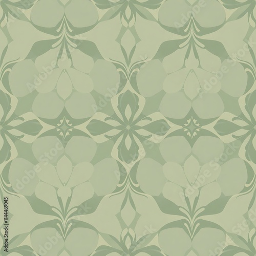 Abstract Floral Pattern: A seamless pattern featuring delicate green floral motifs in an intricate design.