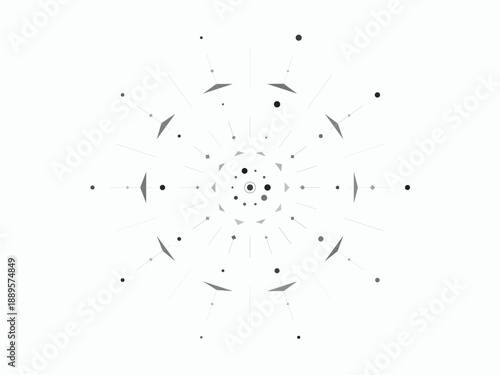 Abstract floral pattern with radial symmetry and lightning effect, minimalist design in monochromatic tones