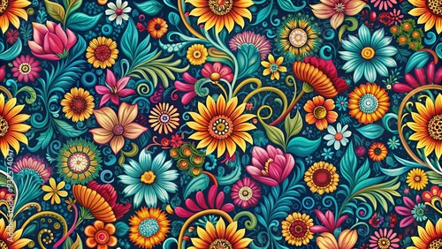 Abstract floral seamless pattern with vibrant colors and intricate details