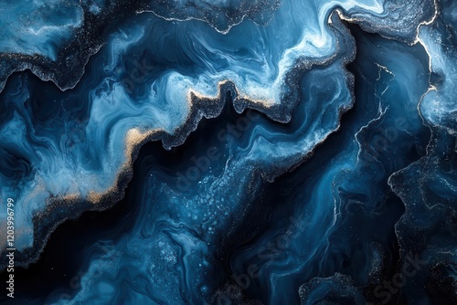 abstract fluid art with swirling indigo and turquoise pigments creating organic marble patterns high contrast ripples