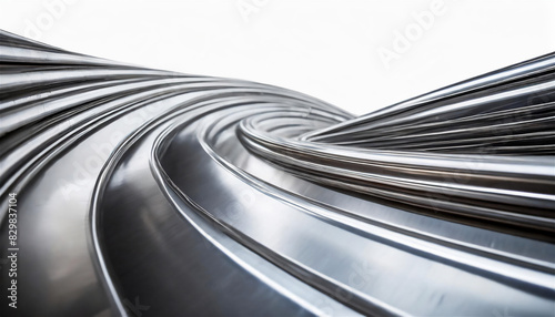 Abstract fluid metal bent form. Metallic shiny curved wave in motion. Design element steel texture effect.