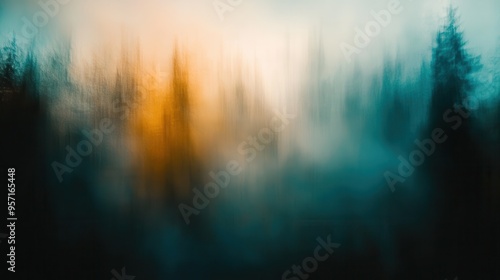 abstract, forest, landscape, tree, sunrise, blurred, silhouette, warm, cool, tone, surreal, dreamy, atmosphere, nature, light, colours, morning, contrast, aethereal, misty, soft, artistic, hazy, calm, peaceful, gradient, moody, orange, blue, sunlight, scenic, imagination