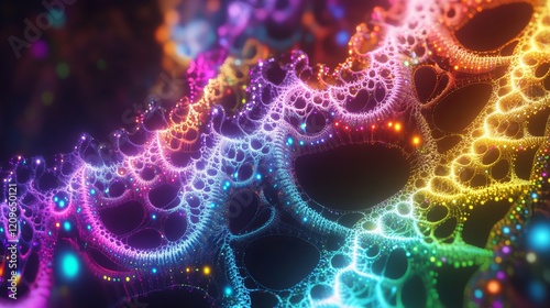 abstract, fractal, design, glowing, high-coloured, rainbow, colours, illustration, pattern, background, science, biology, dark, space, fantasy, chemistry, black, light, research, technology, bright, concept, particle, blue, energy, texture, motion, decoration, molecular
