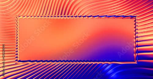 Abstract framed background. Colorful vibrant wavy design wallpaper. Creative graphic 2d illustration with centered frame. Trendy fluid cover with dynamic shapes flow.