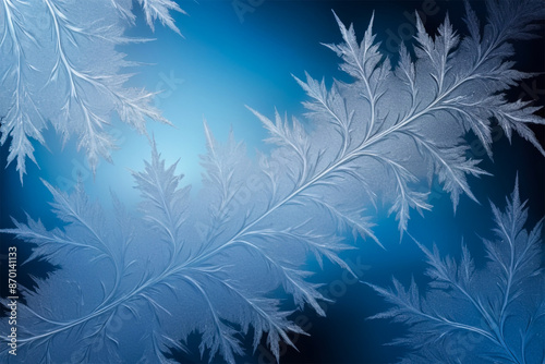 Abstract Frost Patterns on Windowpane with Cool Blue Gradient Background