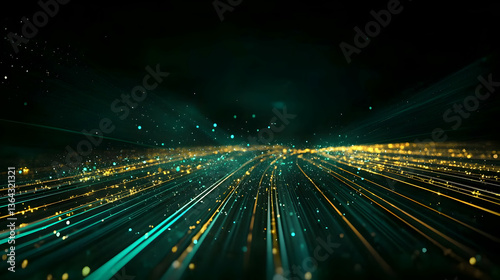 city, light, digital, technology, future, abstract, perspective, motion, blur, speed, gold, teal, line, dot, night, urban, futuristic, glowing, illuminated, energy, datum, network, connection, stream, transport, path, tunnel, highway, pattern, design, graphic, visual, composition, artistic, modern, digital artwork