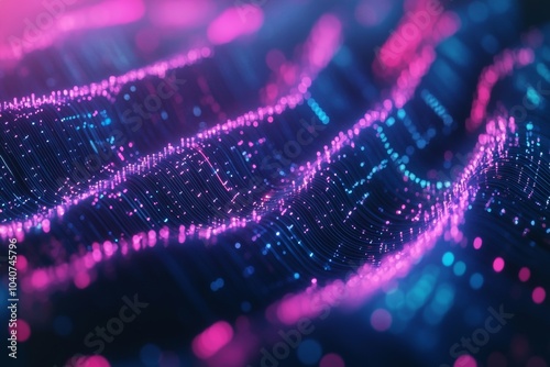 Abstract futuristic digital wave with neon lights, vibrant electronic data flow, technology visualization concept