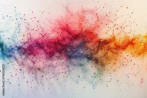 Abstract futuristic wave with colorful lines connecting dots. digital data communication background, cyber plexus design. Big data visualization.