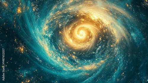 galaxy, spiral, space, abstract, nebula, cosmic, universe, cosmos, swirling, aethereal, star, stardust, celestial, astronomy, blue, gold, glowing, energy, dreamlike, fantasy, background, texture, wallpaper, science, science fiction, night, outer space, concept, creative, illustration, artistic, futuristic, swirl, vortex, magical, mystical, bright, light, dynamic, vibrant, deep space