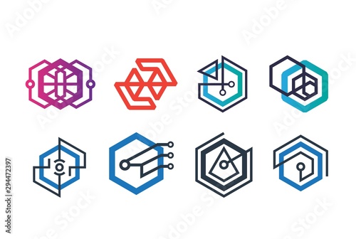 Abstract geometric hexagon technology logo design vector template collection set