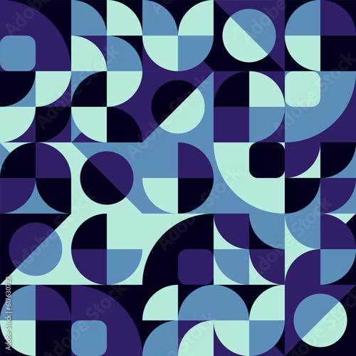 Abstract Geometric Pattern Mosaic Ornament Decorative Background Seamless Vector Black Blue