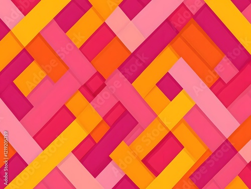 Abstract Geometric Pattern Pink Orange Yellow Interlocking Lines Modern Background