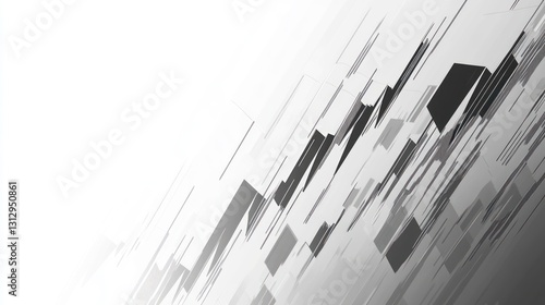 Abstract geometric shapes, diagonal lines, white background, technology concept, graphic design, digital art, poster design