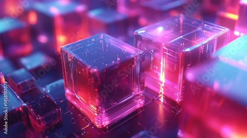 cube, glowing, abstract, digital, futuristic, technology, neon, light, colours, three-dimensional, design, geometric, crystal, glasses, modern, art, pink, red, purple, blue, shape, pattern, texture, illuminated, bright, shiny, transparent, faceted, illumination, graphic, visual, artwork, rendering, composition, computer, illustration, image, glow, creative