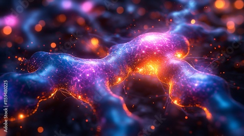 Abstract glowing network structure, vibrant colors.