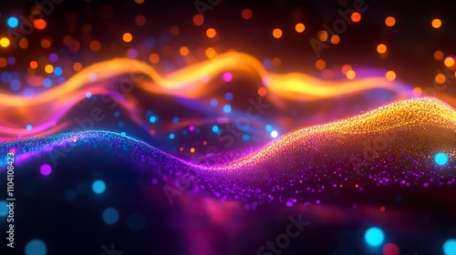 abstract, background, glow, light, wave, particle, energy, vibrant, colours, texture, design, motion, futuristic, dynamic, digital, technology, art, illumination, sparkle, shimmer, bright, colourful, fantasy, cosmic, nebula, galaxy, science, innovation, modern, style, pattern, flow, smooth, curve, gradient, dark, night, shine, effect, scene, visual, graphic, illustration, render, three-dimensional, abstract background