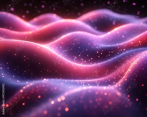 abstract, background, texture, wave, particle, pink, purple, glow, light, sparkle, shiny, vibrant, colourful, digital, art, design, futuristic, technology, science, energy, motion, flow, dynamic, smooth, elegant, luxury, fantasy, cosmic, nebula, space, night, dark, glistering, shimmer, pattern, surface, ripple, curve, illustration, graphic, three-dimensional, render, gradient, bokeh