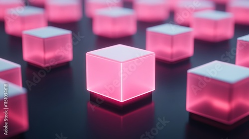 Abstract glowing pink cubes arranged on a dark surface, creating a vibrant and modern aesthetic with an inviting and futuristic atmosphere in design
