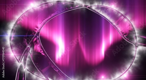 Abstract glowing purple light design with transparent shapes creating a futuristic and ethereal atmosphere