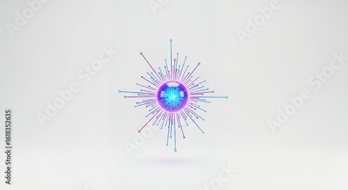 Abstract Glowing Sphere with Radiating Lines on White Background